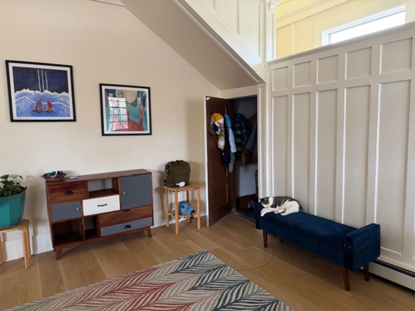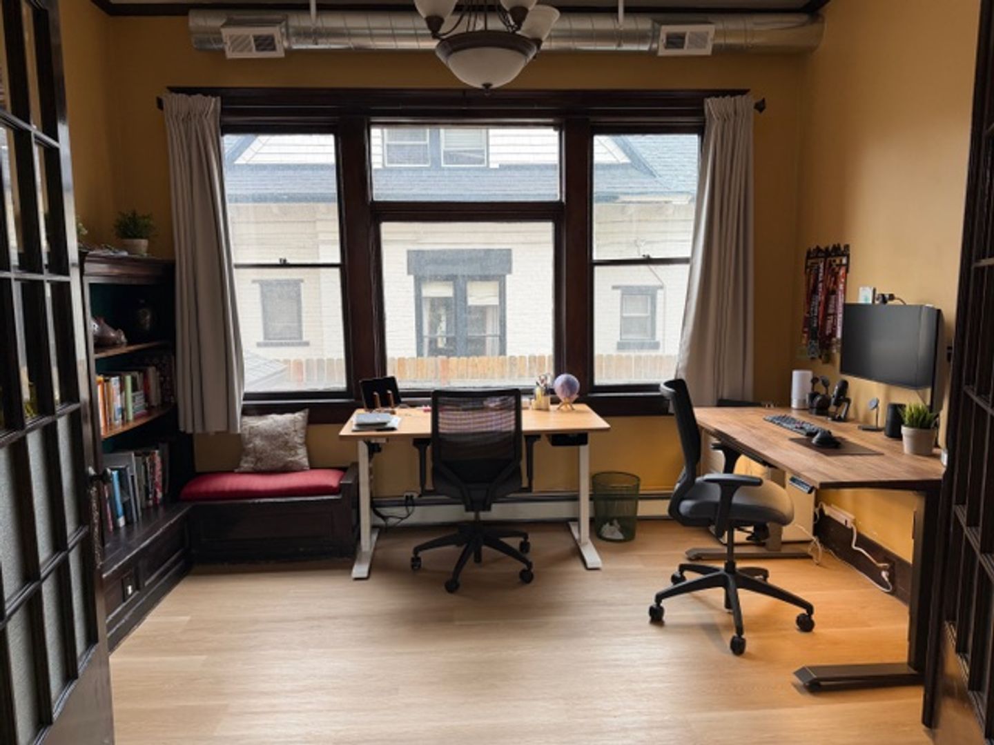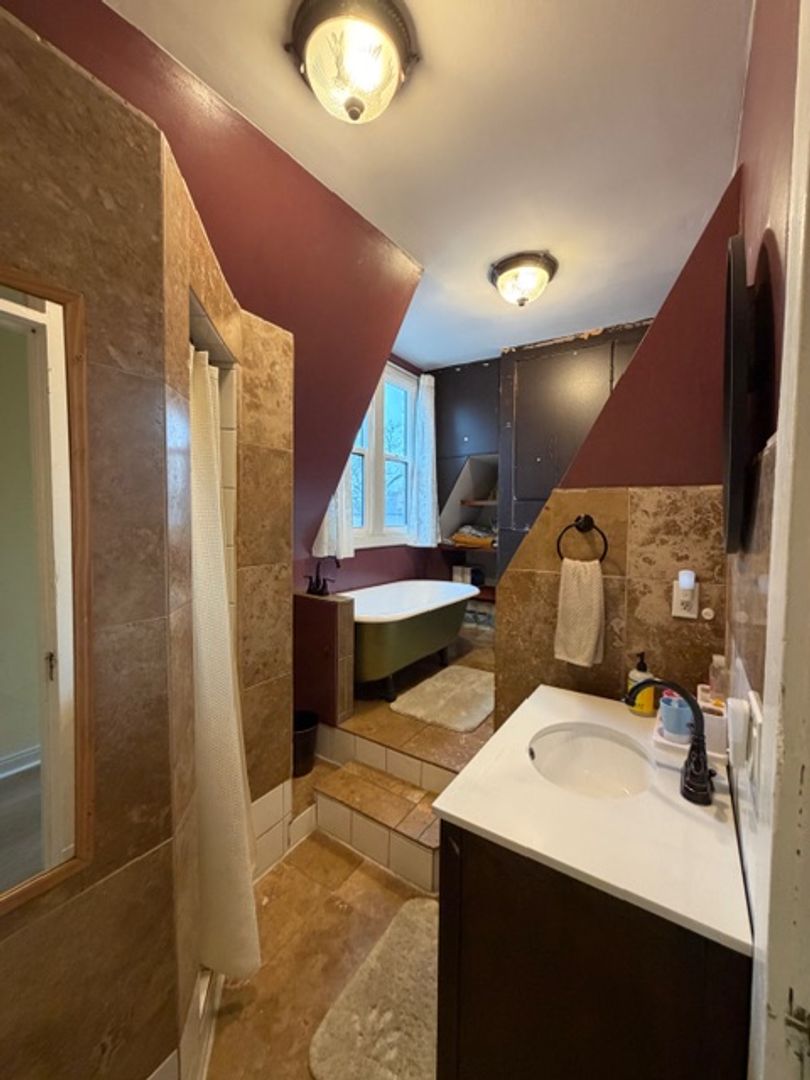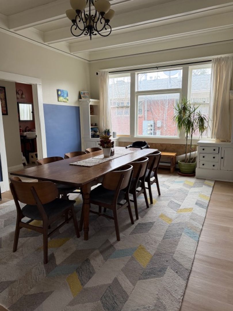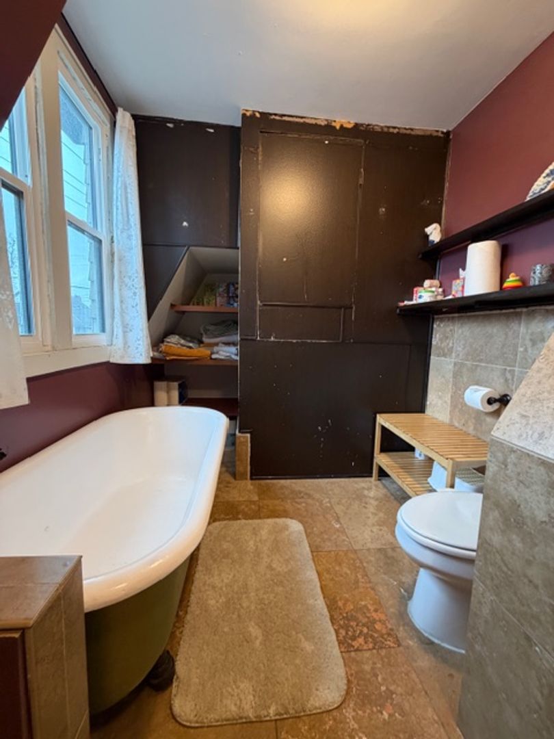 Other perks: garden beds, raspberry bushes, fruit trees, outdoor covered area, front porch, secure under-porch storage, built-in storage in multiple rooms, expansive walk-up attic with ample storage space, new stainless steel appliances, gas range, mini split cooling, boiler heating, 2-person jacuzzi bath tub, in-unit washer/dryer/dishwasher, 10-foot ceilings, two staircases (front and back), ornate crown molding, brand new LVP floors, artisan well, off-street parking (2 spots in front driveway), shared fenced yard