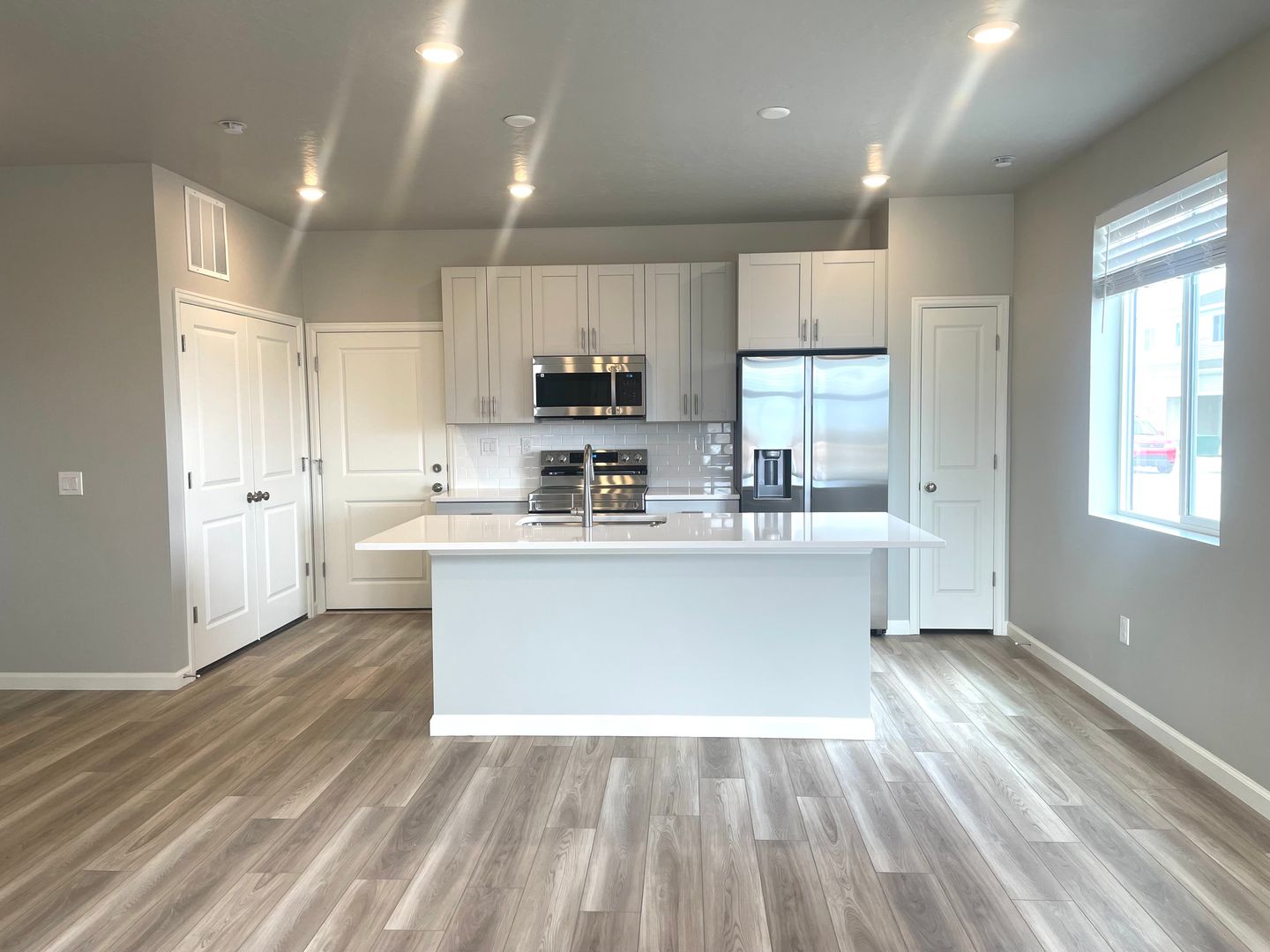 This duet-homes have plenty of curb appeal with a stylish multi-dimensional exterior and front yard landscaping with a white picket fence. The interior is bright with oversize windows and an expansive "heart of the home" great room. Enjoy designer LVP flooring, Shaw carpeting, Delta faucets, and Sherwin-Williams paint throughout. The kitchen is complete with a dining island, stylish counter-tops, stainless-steel sink, and large pantry. The primary suite and bathroom boast a large walk-in closet and spa shower.